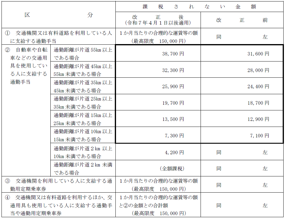 また、改正後の非課税限度額は、令和7年4月1日以後に支払われるべき通勤手当について適用されます。